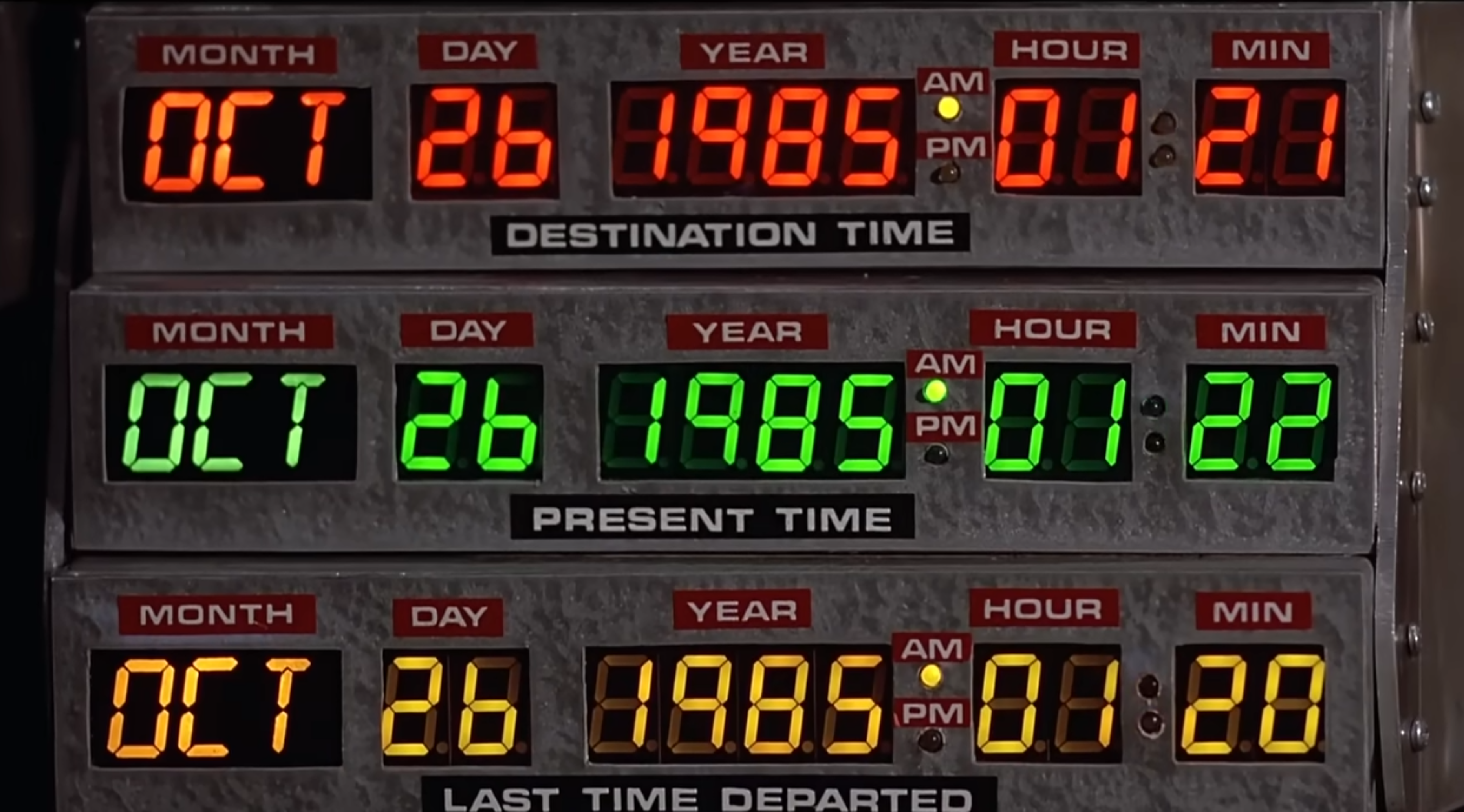 영화에서 딜로리언 타임머신은 "디럭스 타임머신"으로 불립니다. 그러나 원래는 "플럭스 캐파시터"로 불렸습니다.