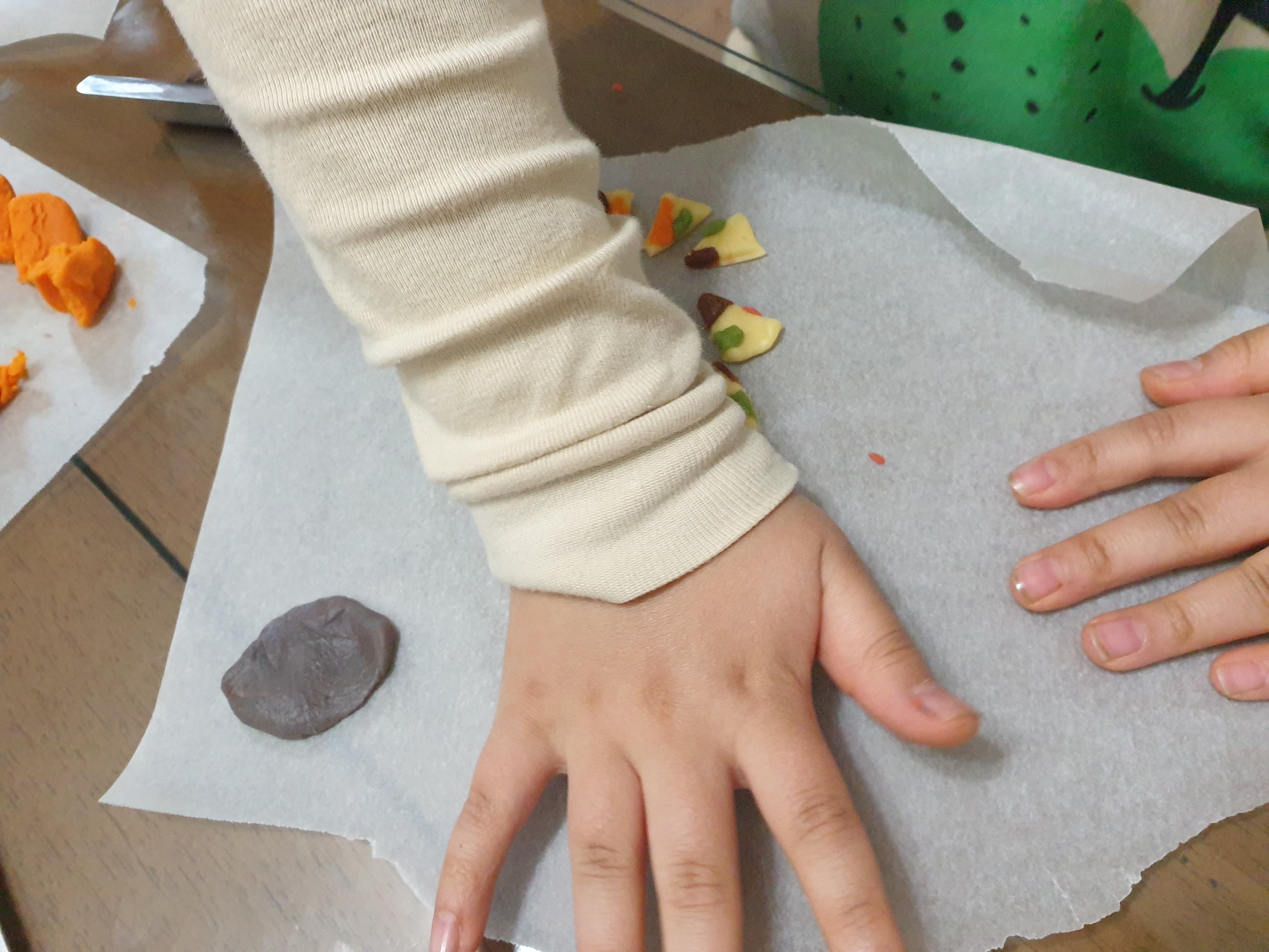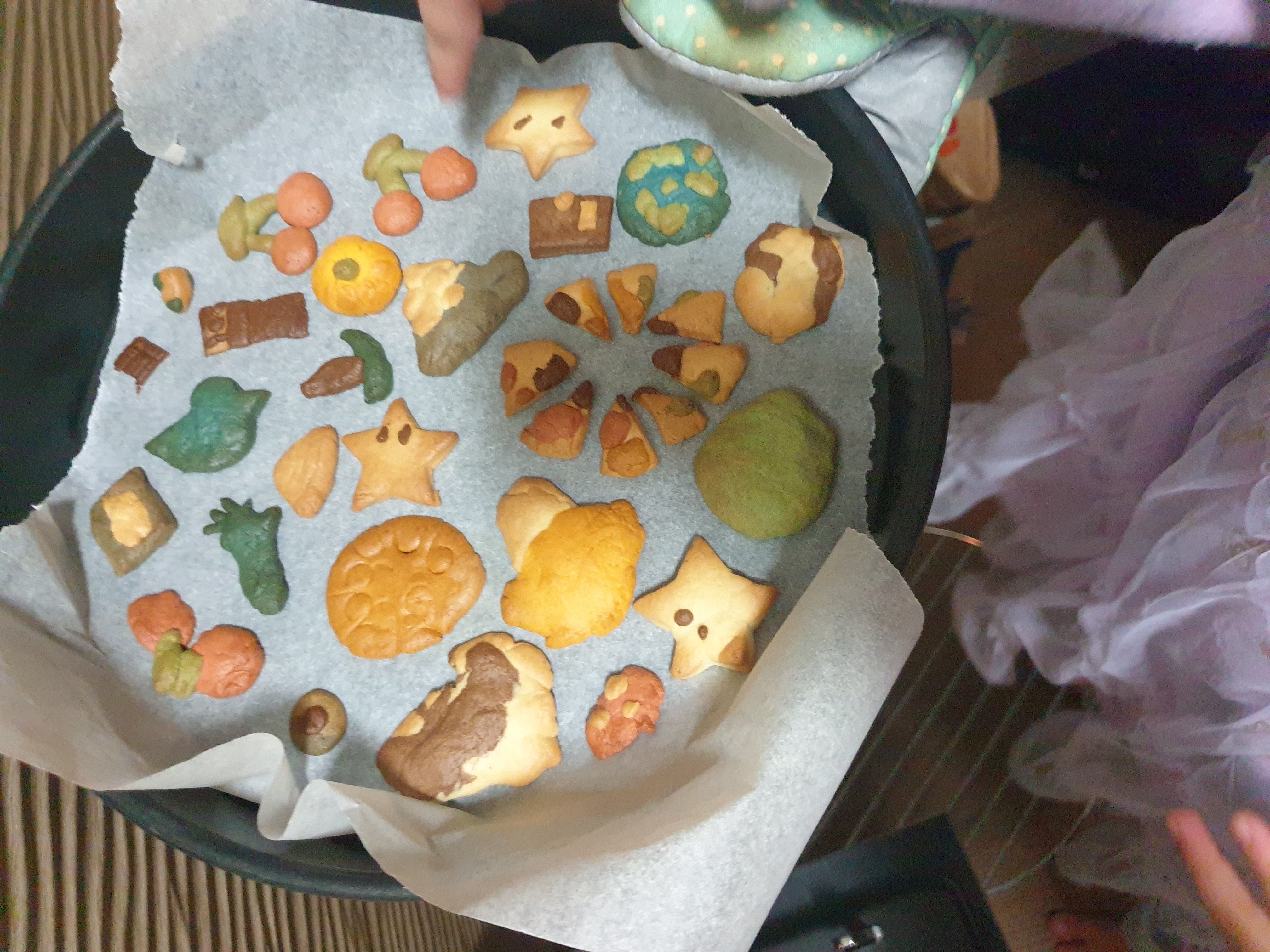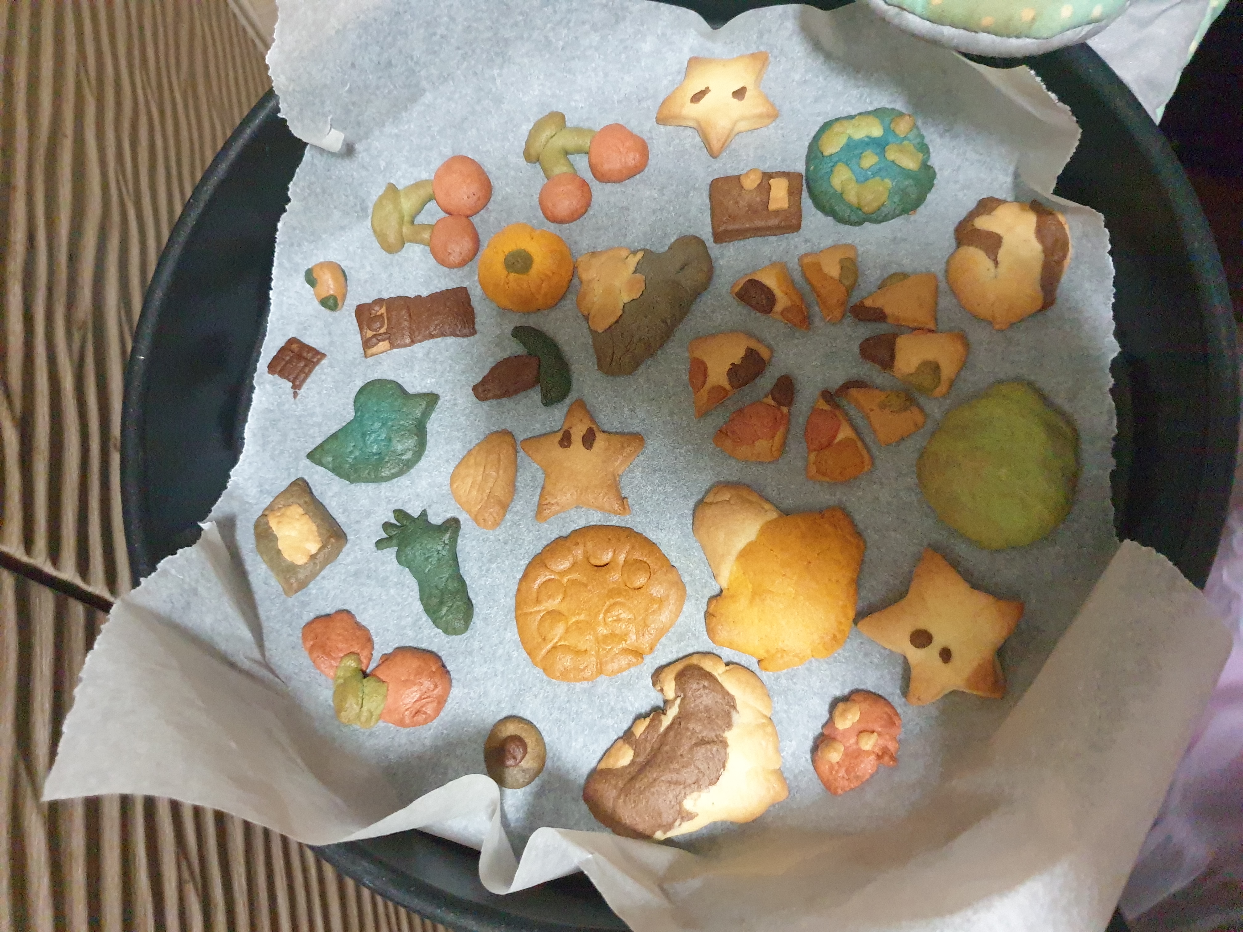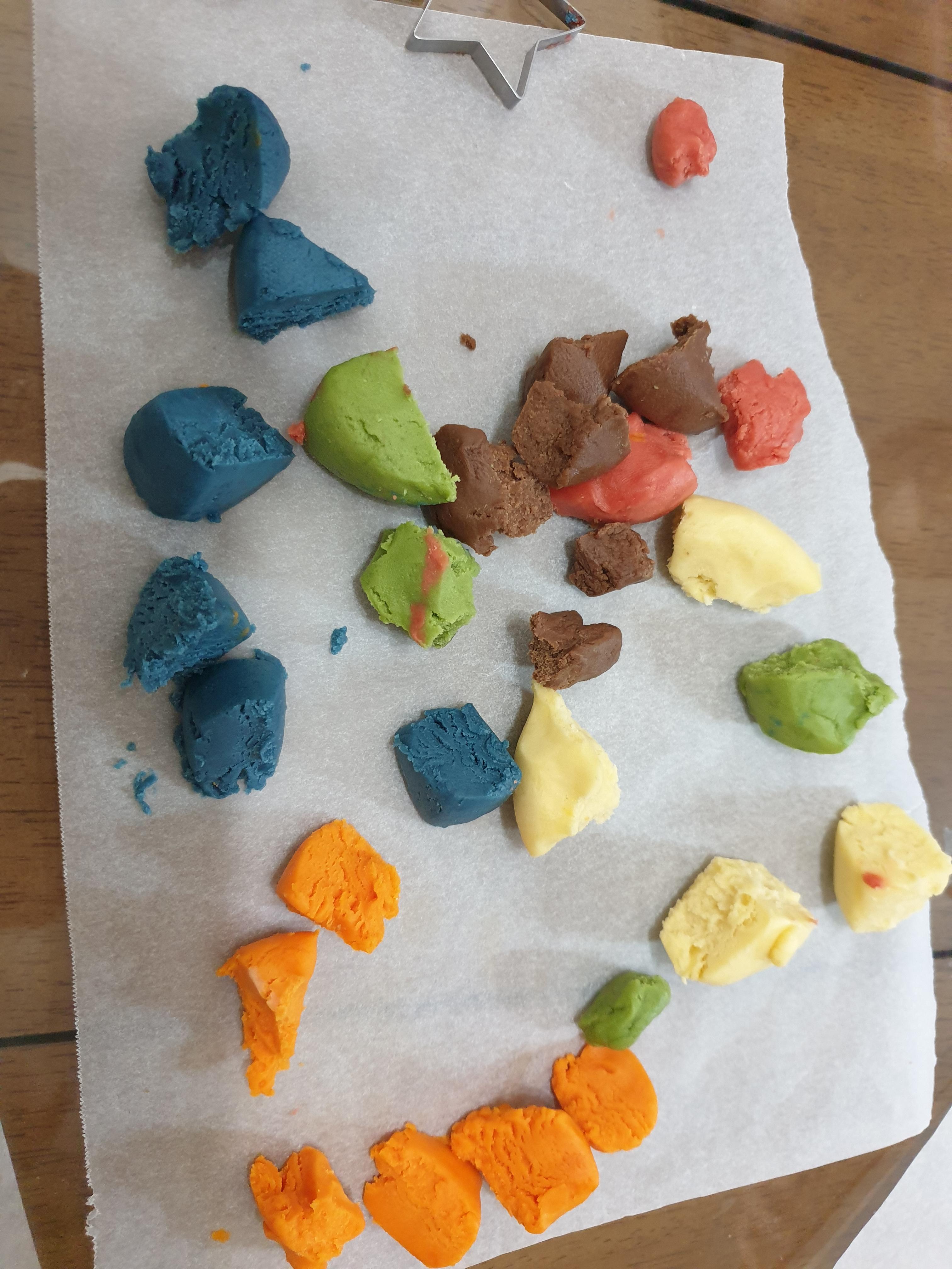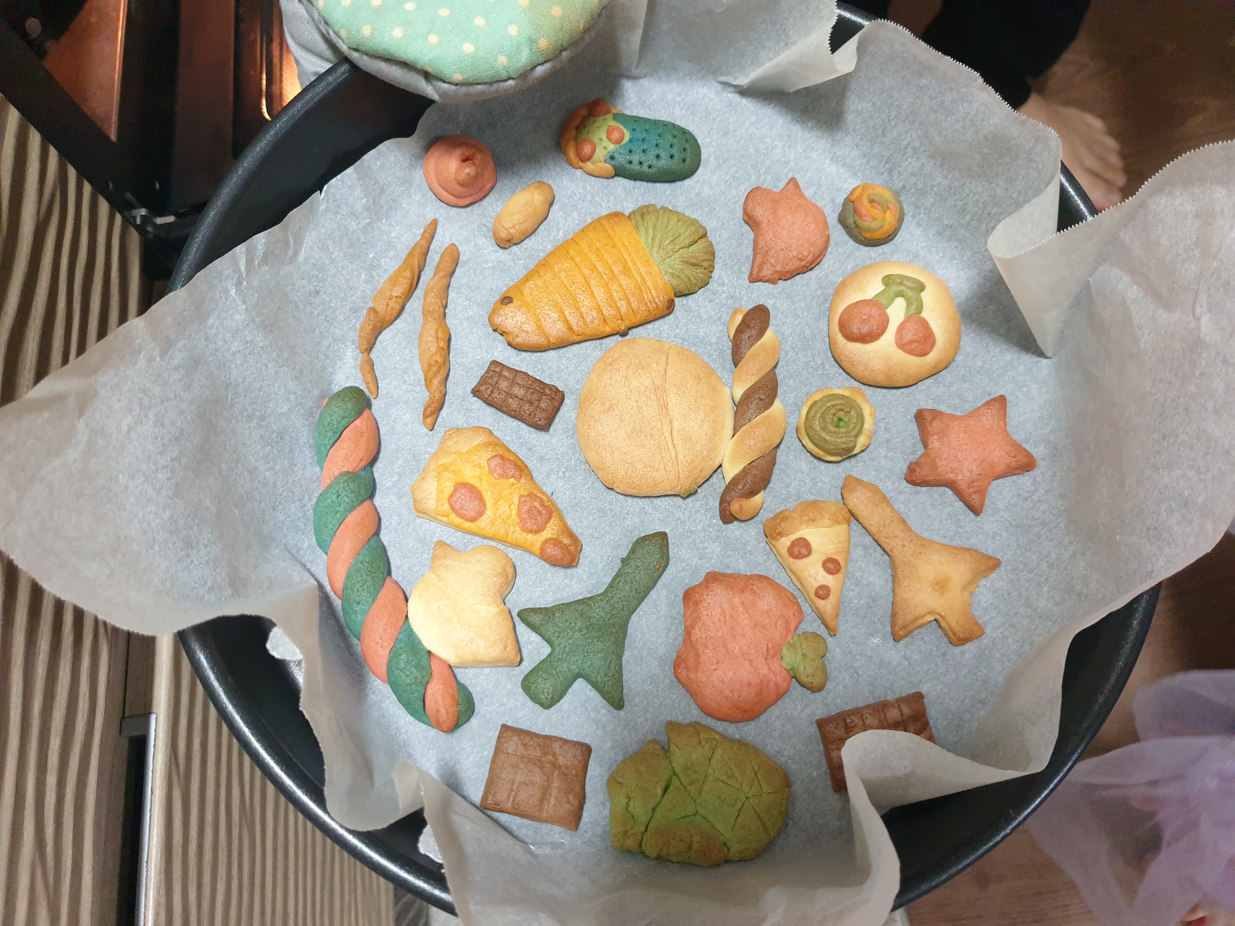 언니 덕분에 우리 아이들은 재밌게 쿠키를 만드는 시간을 가질 수 있었다. 우리 아이들은 집에서 색찰흙, 아이클레이 등 여러가지 반죽장난감을 가지고 논 적은 있지만, 이렇게 색깔이 다양한 쿠키로 만들기를 해본 적은 없었다.