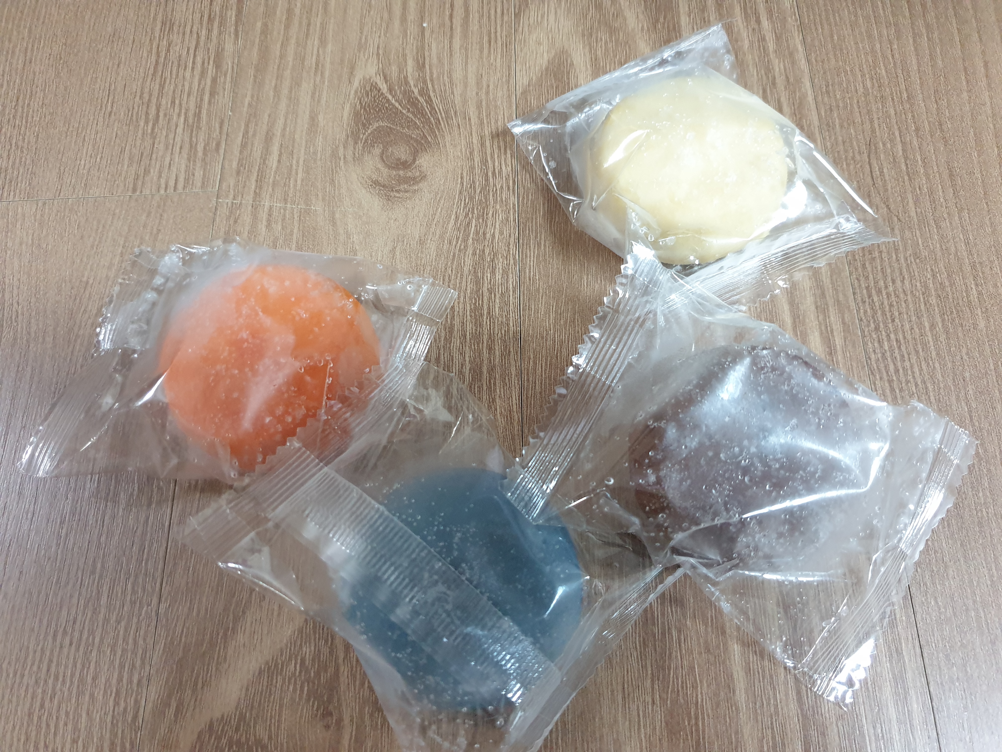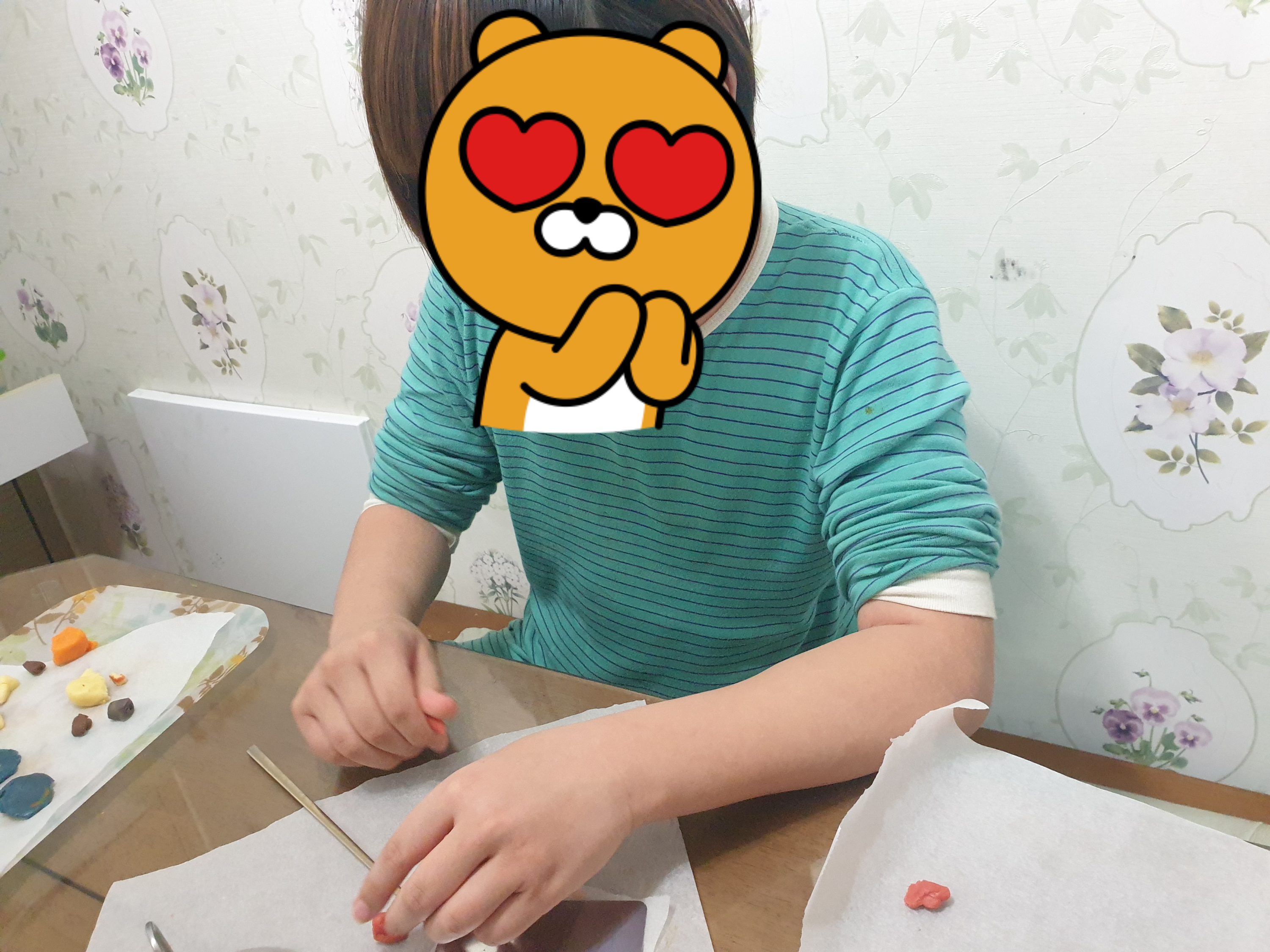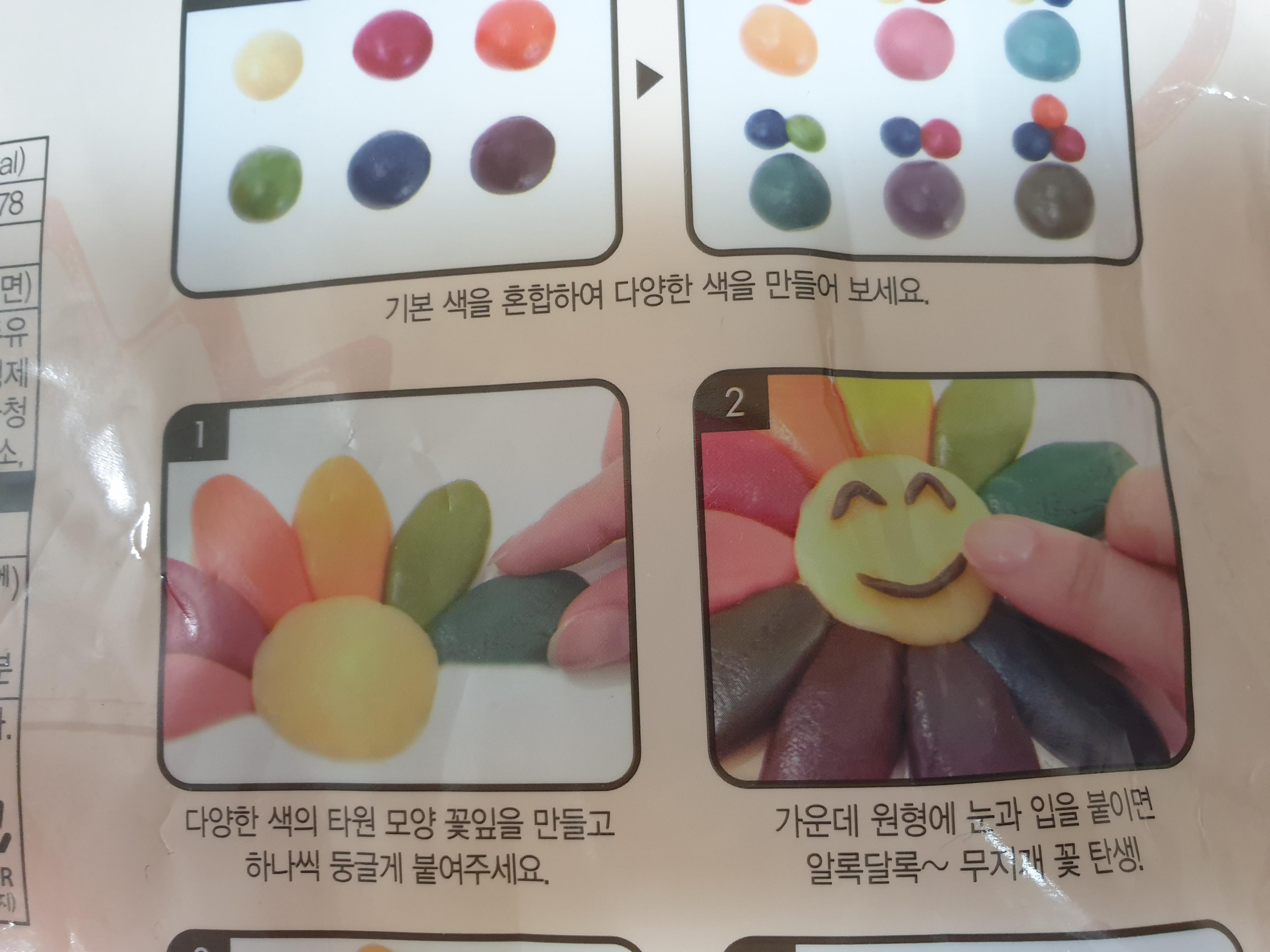 여러 반죽을 혼합하여 다양한 색을 만들 수 있다고 적혀 있었는데, 나는 설명서를 읽지도 않고 보라색과 귤색 등을 만들어보았기 때문에 스스로의 센스에 뿌듯했었다. ㅋㅋ ?!?!