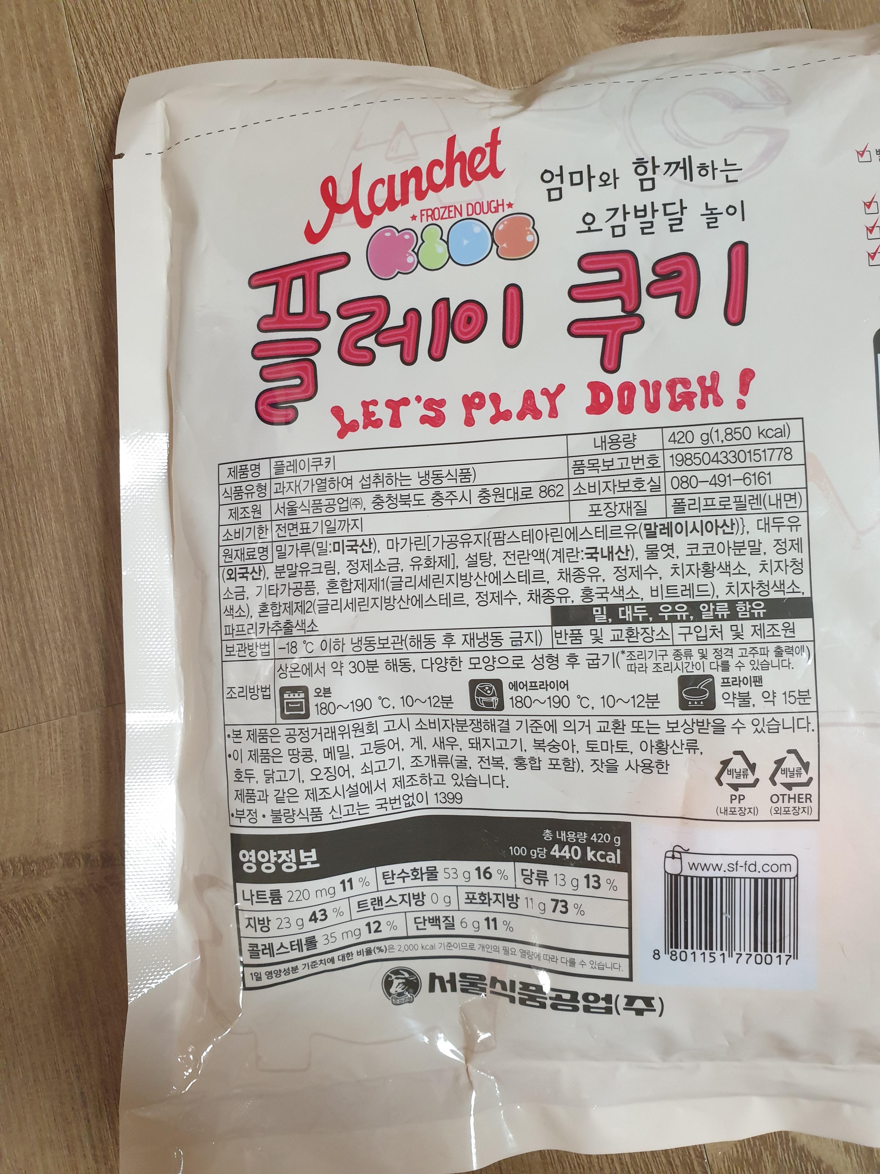 쿠키만들기 추천제품 '플레이쿠키'는 냉동보관이지만, 꺼내서 상온에서 보관 후에 만져보면 약간 기름지다는 것을 느낄 수 있다.