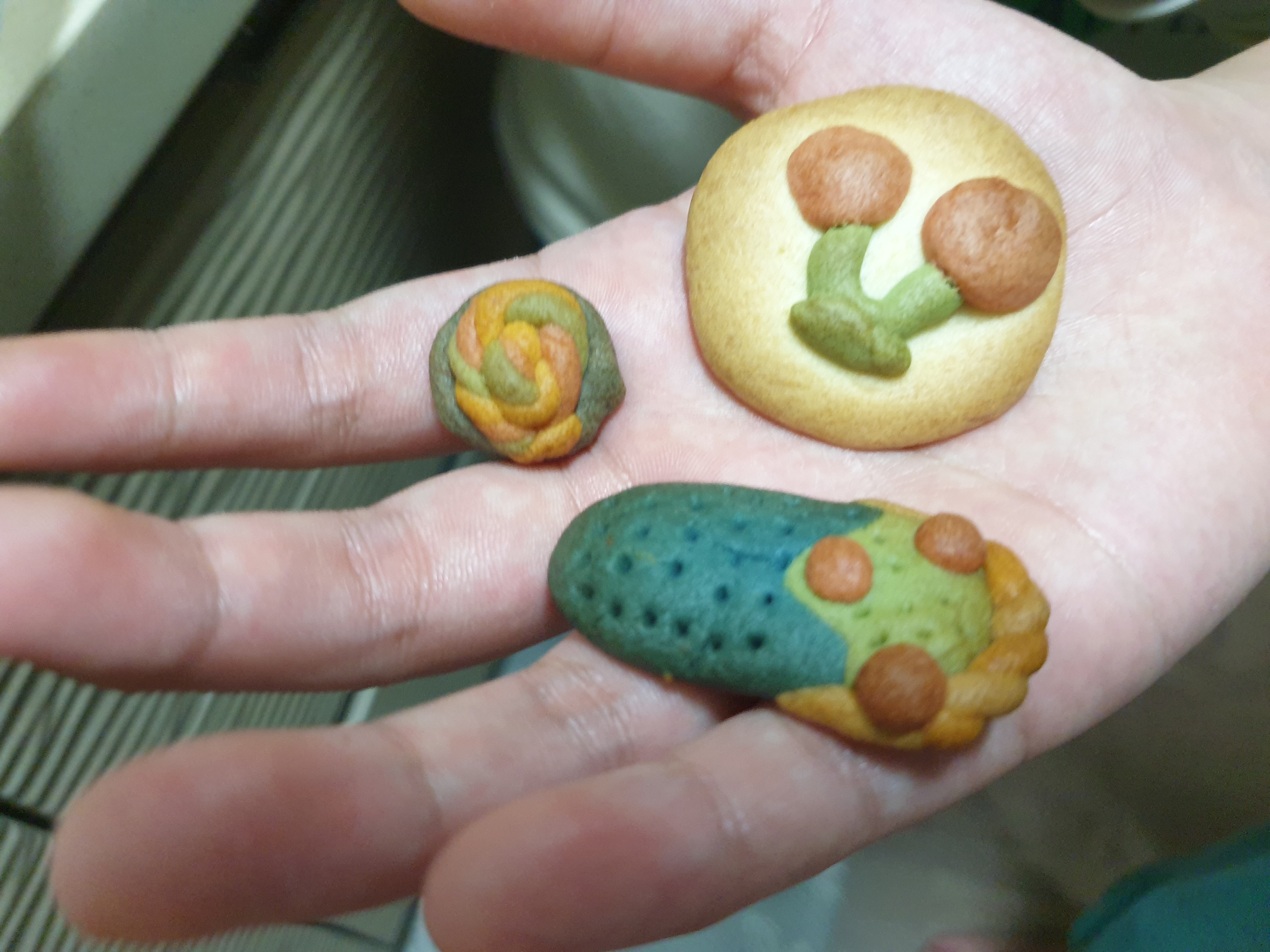 처음의 색깔은 약간 바래고 전체적으로 갈색을 띄는 쿠키들로 바꼈다.