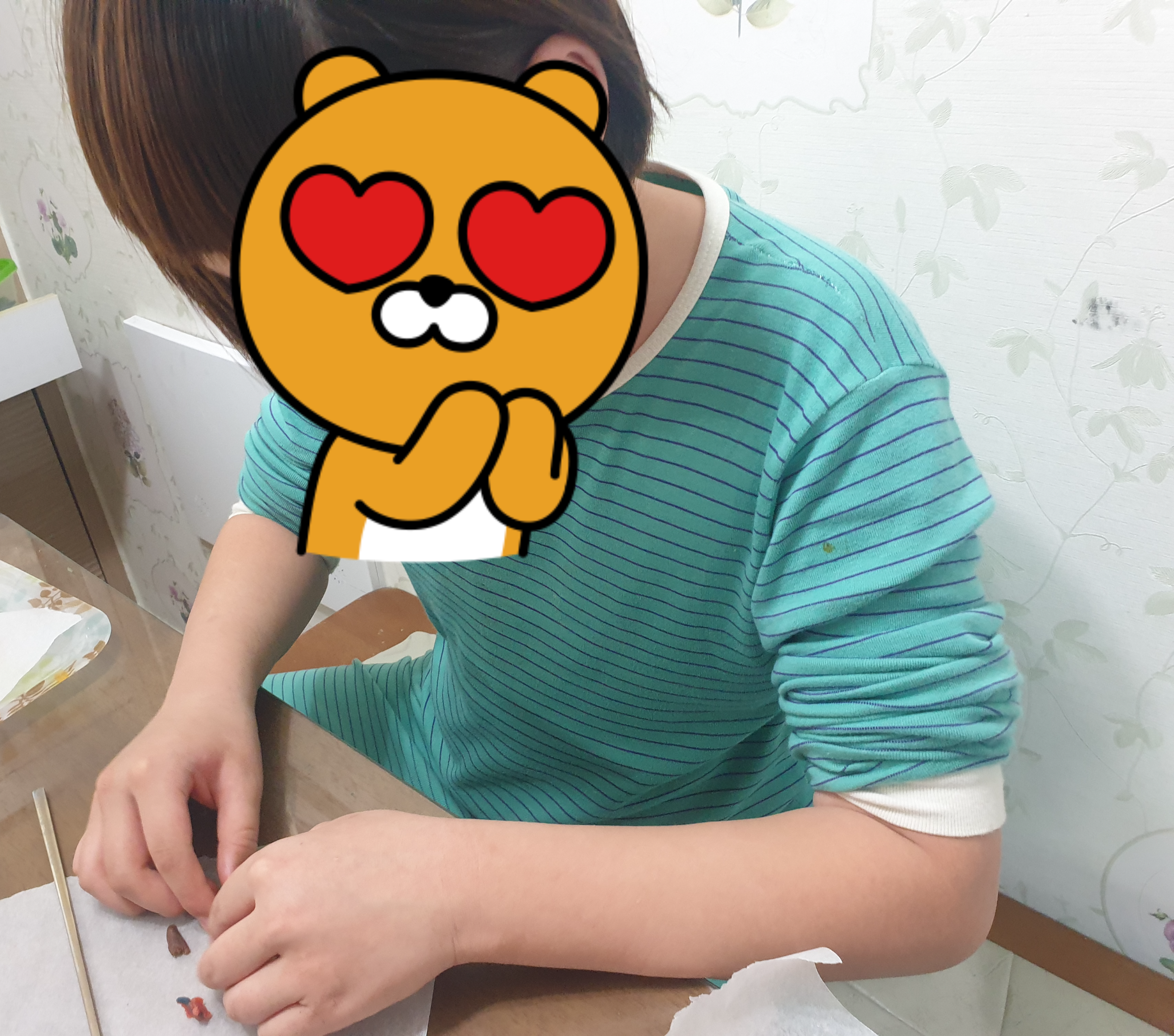 드디어 본격적으로 만들기를 시작하는 아이들. 좋아하는 색깔로 정성을 담아 만드는 중이다.
