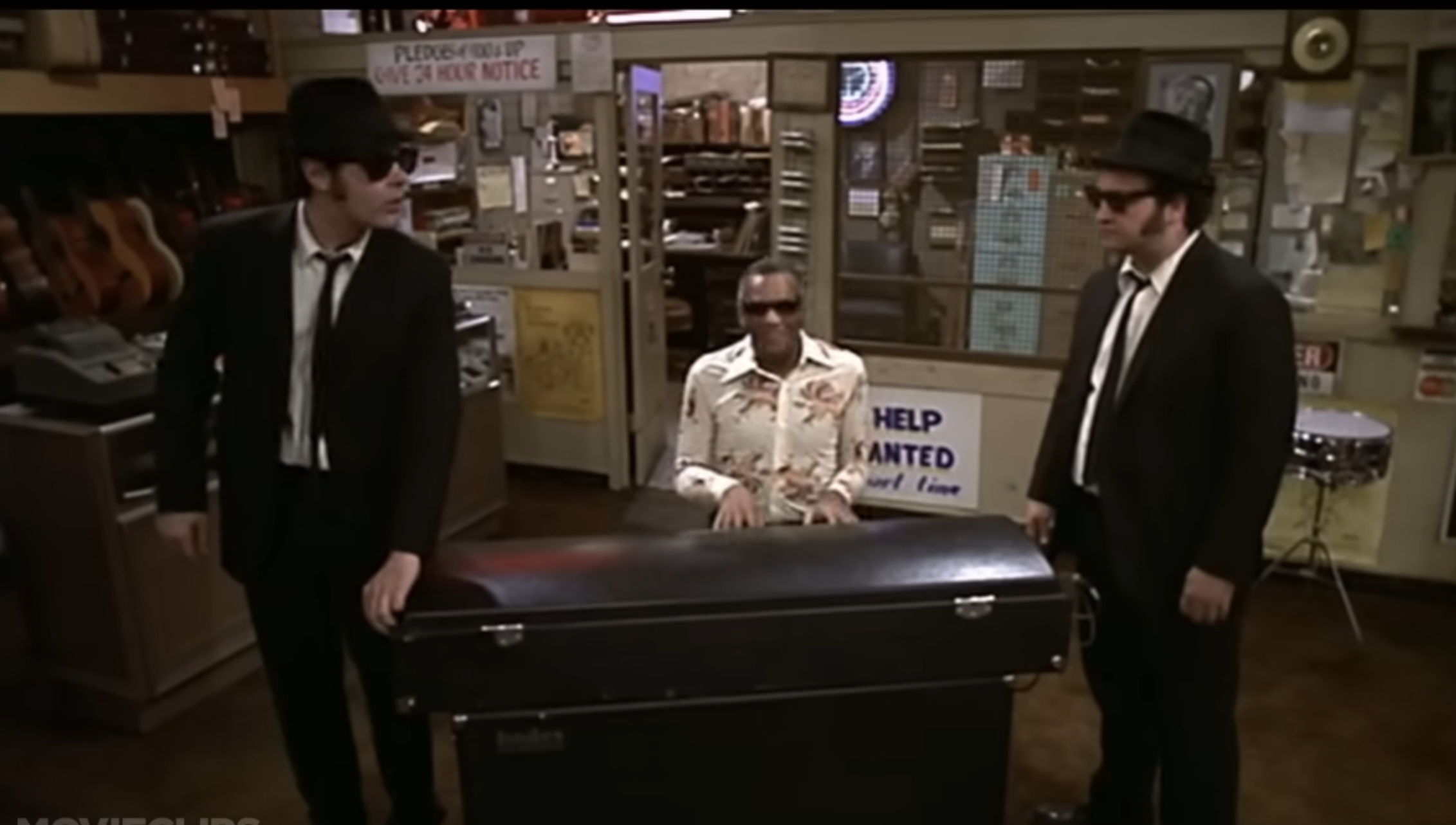 제목에서 알 수 있듯이 블루스브라더스는 영화 전반에 걸쳐 블루스 음악이 흘러나오고, 당시 유명했던 음악 아티스트들이 까메오로 대거 등장하는데요.